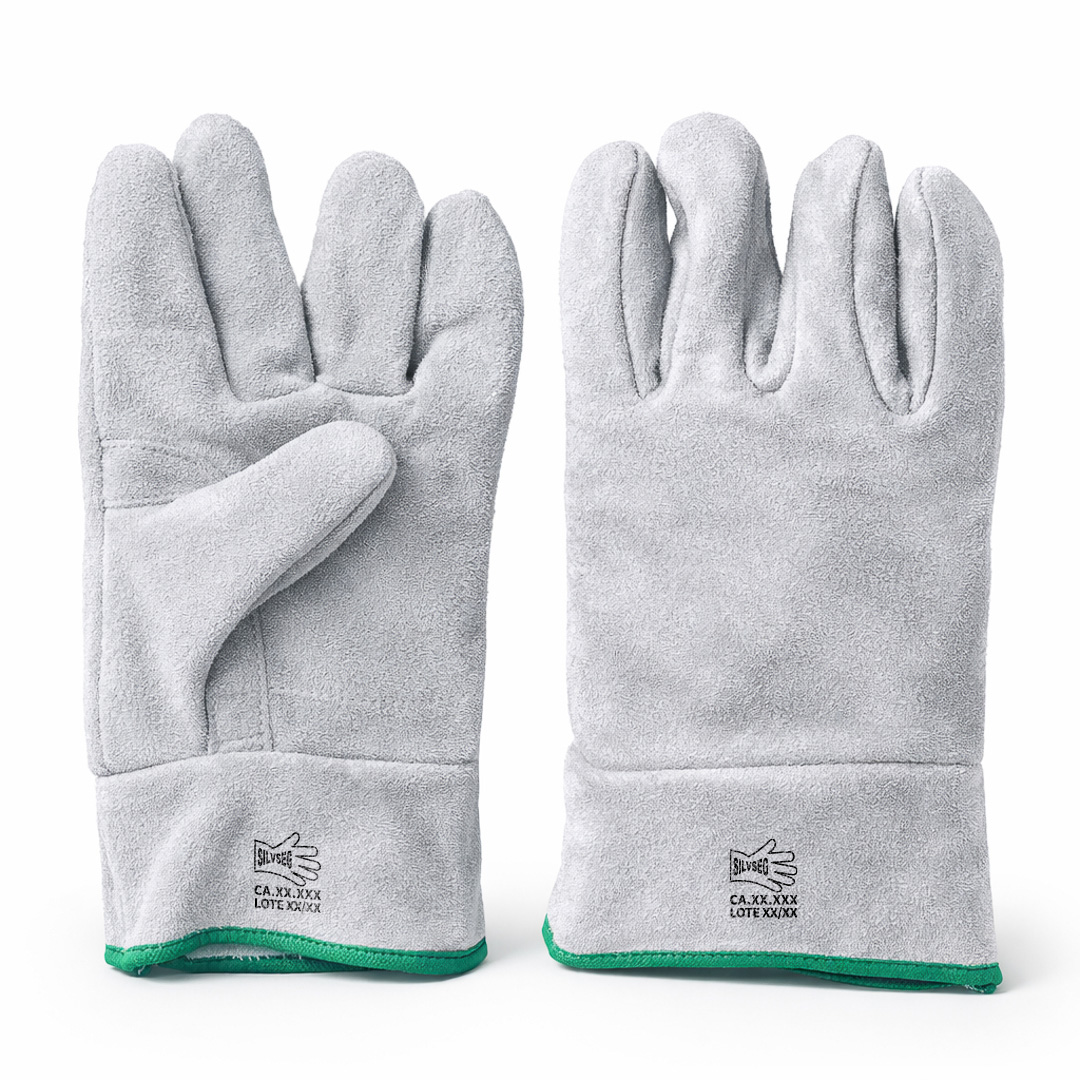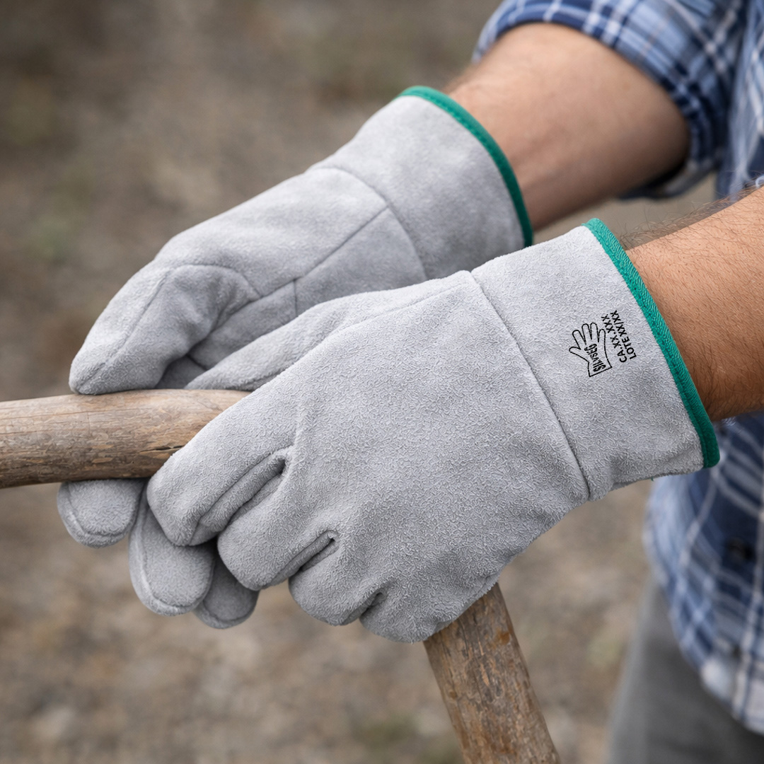 Luva de segurança confeccionada em raspa de couro bovino, no modelo canadense, caracterizado pelo formato tradicional e construção simples, proporcionando proteção mecânica básica às mãos. Indicada para manuseio de materiais e atividades operacionais onde há risco de abrasão, atrito e contato com superfícies ásperas. Produto destinado a uso industrial e profissional, sem forro térmico, não indicado para exposição a calor intenso, agentes químicos ou riscos elétricos.