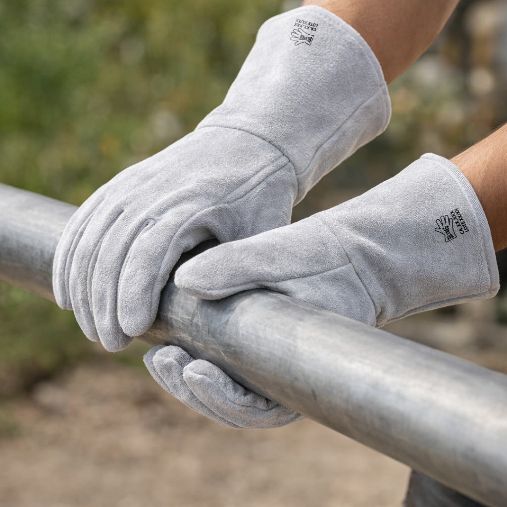 Luva de segurança confeccionada em raspa de couro bovino, modelo comum, com construção simples e robusta, destinada à proteção mecânica básica a moderada das mãos. O modelo P20 apresenta maior espessura e resistência em relação aos modelos mais leves, sendo indicado para atividades com maior atrito e desgaste mecânico. Produto de uso industrial e profissional, sem forro térmico, não indicado para exposição a calor intenso, agentes químicos ou riscos elétricos.