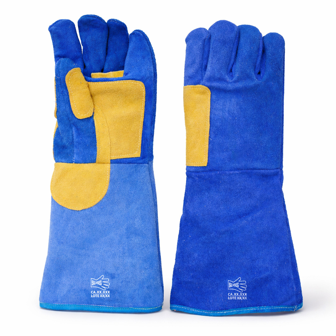 Luva de segurança confeccionada em raspa de couro bovino submetida a tratamento ignifugante, associada a forro térmico interno, proporcionando proteção mecânica e atenuação de calor em aplicações industriais. O tratamento ignifugado tem como finalidade reduzir a propagação de chamas superficiais e aumentar a resistência do material ao calor incidental. Indicada para atividades que envolvem soldagem, caldeiraria e manuseio de materiais aquecidos, desde que não haja contato direto e contínuo com chamas intensas ou fontes de calor extremo.