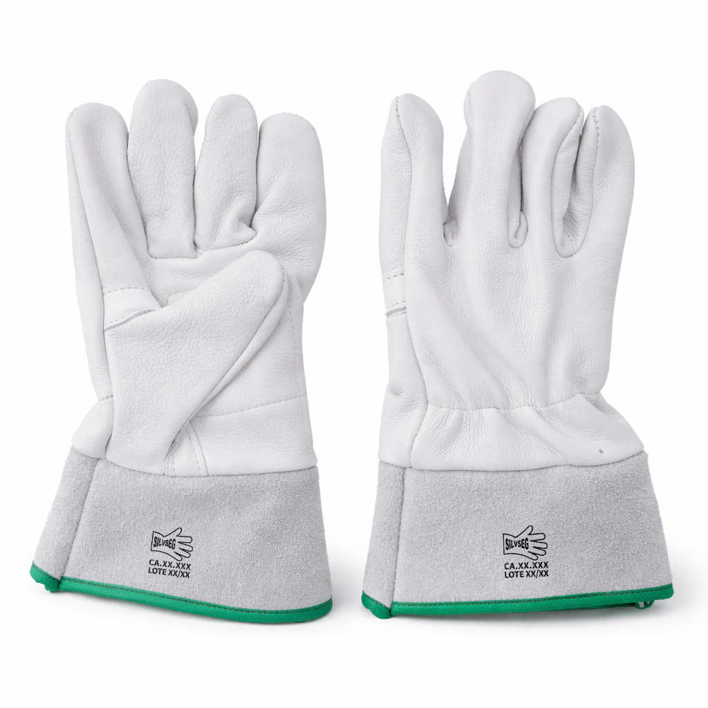 Luva de segurança confeccionada em couro bovino tipo vaqueta, caracterizada pela maior maciez e melhor tato em comparação à raspa, proporcionando conforto ao usuário durante o manuseio de materiais. O modelo P7 é indicado para atividades que exigem proteção mecânica básica, com boa flexibilidade e destreza. Produto destinado ao uso industrial e profissional, não indicado para exposição a calor intenso, agentes químicos ou riscos elétricos.