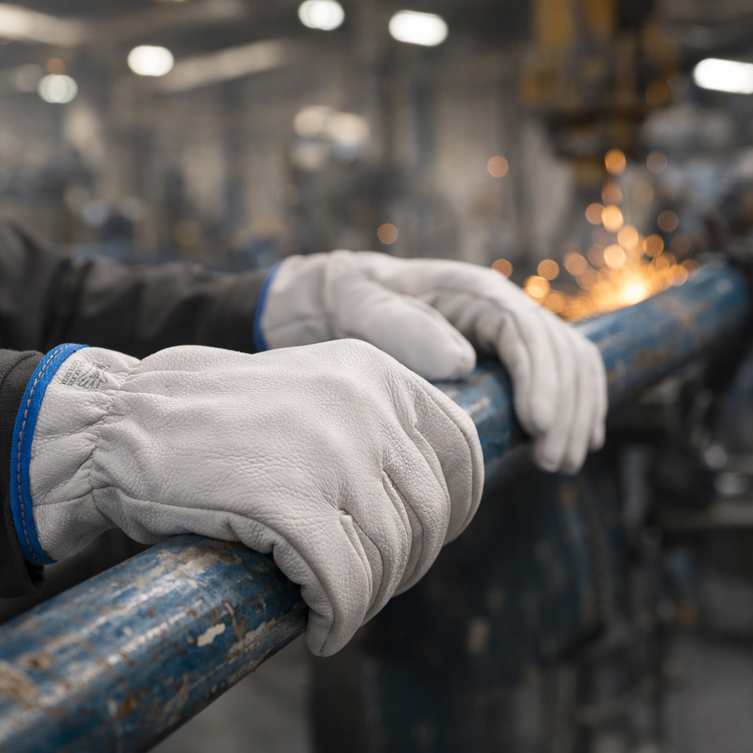 Luva de segurança confeccionada em couro bovino tipo vaqueta, modelo petroleira, caracterizada por construção mais robusta e maior cobertura da mão em comparação a luvas de vaqueta comuns. O couro tipo vaqueta proporciona boa resistência mecânica aliada a maior maciez e tato, favorecendo o conforto durante o uso prolongado. Indicada para atividades industriais e operacionais que envolvem manuseio de materiais, ferramentas e peças, sem exposição a calor intenso, agentes químicos ou riscos elétricos.
